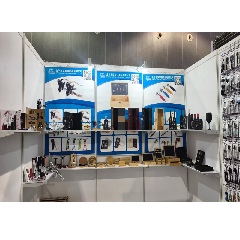 Jinhua Hanjia Commodity Co., Ltd., mis asub näitusepaigaga samas halduspiirkonnas ja asub Yiwu Small Commodities Cityst ühetunnise autosõidu kaugusel, naudib piirkondliku majanduse tootmisahela eeliseid. Kasutades ära Yiwu eduka rahvusvahelise e-kaubanduse ärikeskkonda, on meie ettevõte valinud välja seitse tooteseeriat ja sadu kodumaiste ettevõtjate jaoks sobivaid tooteid ja rahvusvahelisi kaupu. Siia kuuluvad kodu- ja köögitarbed, veinitarvikud, nagu roostevabast terasest ja legeeritud veinikorgitserid, veinikorgid, šampanjatööriistad, küüslaugupressid, pähklipurunejad, konserviavajad, koorija, lihapehmendaja, kokteililoksud, roostevabast terasest puusakolb, veinikarahvinid, puidust ja PU-st veinikomplektid ja muud.