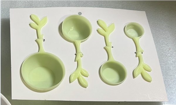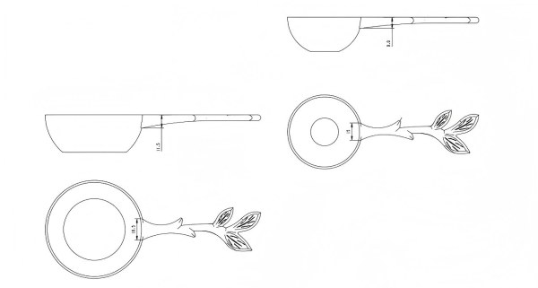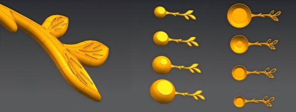 Esiteks hõlmas toote kuju ja võimaliku kasutuse hindamine eelnevate kogemuste põhjal. Kasutades põhimaterjalina tsingisulamit, arvutasime välja materjali tiheduse ja pinnaomadused, arvestasime ergonoomikaga ning kujundasime nelja mõõtelusika või jäälusika üldmõõtmed. Seejärel täpsustasime iga kõverat, R-raadiuse skaala detaile ja muid väikeseid mõõtmeid puudutavaid detaile.