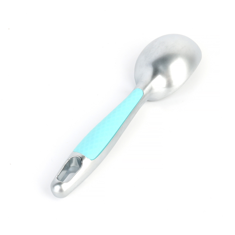 Professionaalse tsingisulamist jäätiselussi jaoks, mis on nõudepesumasinas pestav mugava käepidemega, kaalub 88 grammi ja pikkus on 16,5 sentimeetrit. Käepideme otsas on konstrueeritud riputusauk, mis muudab selle mugavaks ladustamiseks ja korraldamiseks igas kodus, võimaldades samas pärast puhastamist lihtsat riputamist, et tagada põhjalik kuivamine. Seda jäätisekulbi saame valmistada vastavalt kliendi nõudmistele ja erinevatele värvitoonidele. kinnitust.